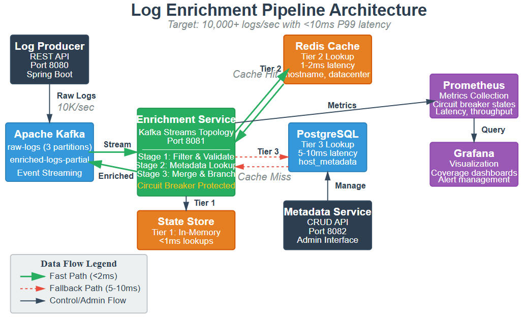 Distributed enrichment service processing 10,000+ logs/second with Spring Boot and Kafka Streams