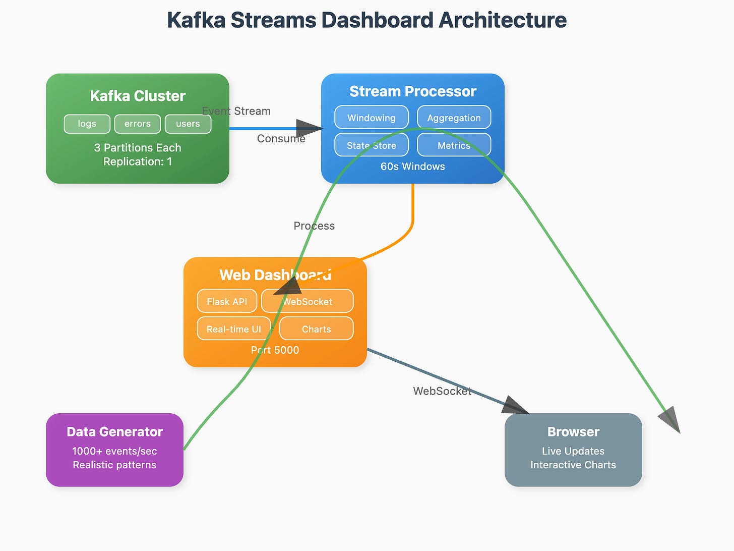 Today we're constructing a production-grade real-time monitoring dashboard that transforms raw Kafka streams into actionable business intelligence: